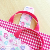 表地と裏地の間には接着芯を貼り、持ち手には厚手のテープを縫い付け、重たい鍵盤ハーモニカを安心して長く持ち運べるよう丈夫に仕立てています。