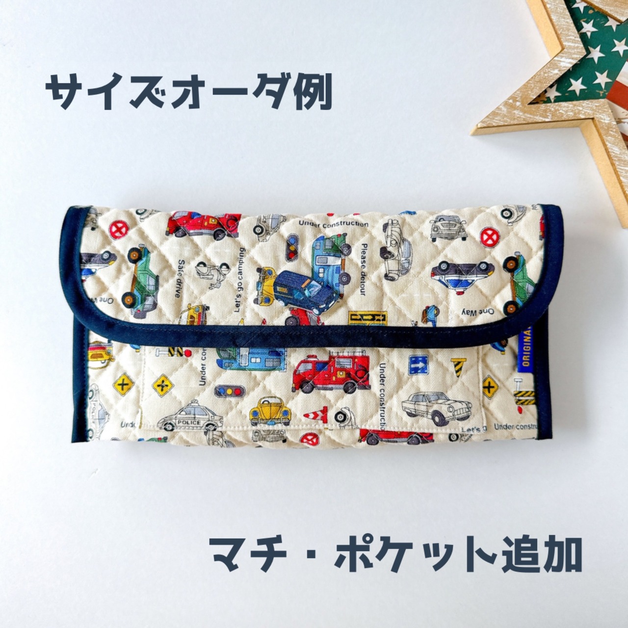 キルティング粘土ベラケース『カラフルポップなはたらく車柄』カトラリーケース|はさみ入れ|粘土ベラ袋|ペンケース|小物入れ|サイズオーダー|プラポン袋|男の子入園入学