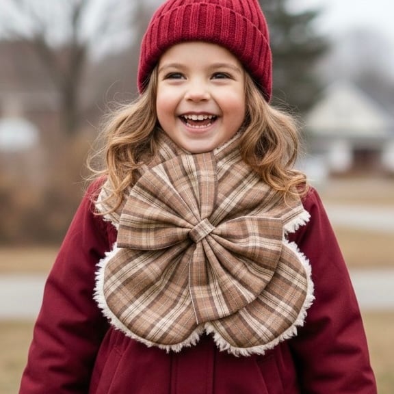 かわいい きれいめ よそ行き 女の子 ガール デイリー トラッド ロリータ 英国チェック ブラウン スヌード クリスマスカラー ネックウォーマー トレンド 子供用 トラディショナル 防寒 ホリデーギフト 冬服、誕生日プレゼント、ジュニア、6歳 7歳 3歳 4歳 5歳 8歳 9歳 10歳 エコファー MAVERICK マーベリック マーヴェリック