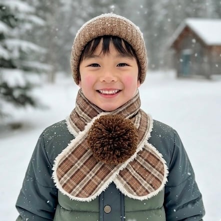 かわいい きれいめ よそ行き 女の子 男の子 デイリー トラッド ロリータ 英国チェック ブラウン スヌード ネックウォーマー トレンド 子供用 トラディショナル 防寒 ホリデーギフト 冬服、誕生日プレゼント、ジュニア、6歳 7歳 3歳 4歳 5歳 8歳 9歳 10歳 エコファー サスティナブル MAVERICK マーベリック マーヴェリック