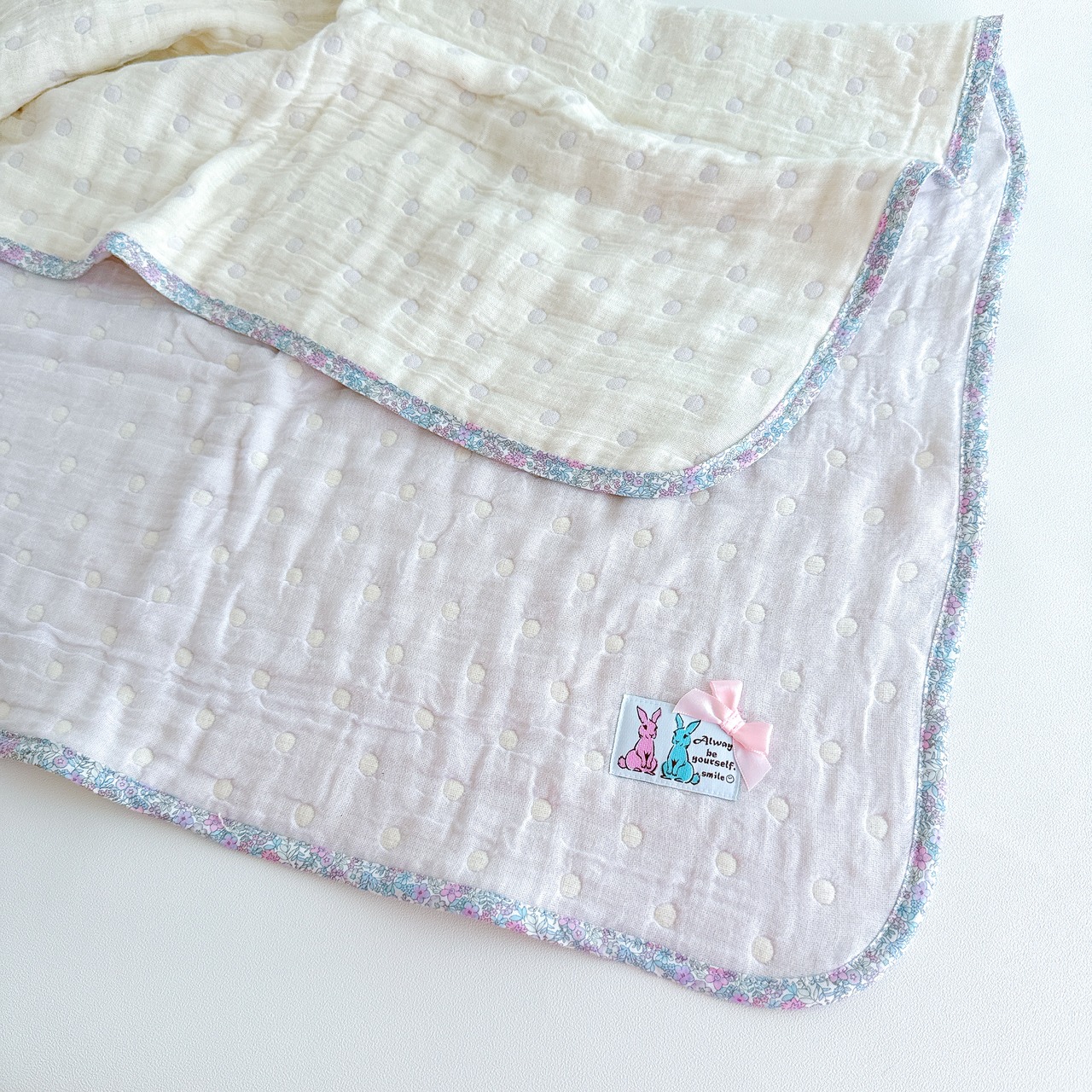 出産祝いセット ふわふわ6重ガーゼケットとハンカチスタイセット(ラベンダー)天然素材|ドット柄|女の子|小花柄|うさぎ|マルチケット|ブランケット|ビブ|バンダナスタイ|アフガン|フワラ